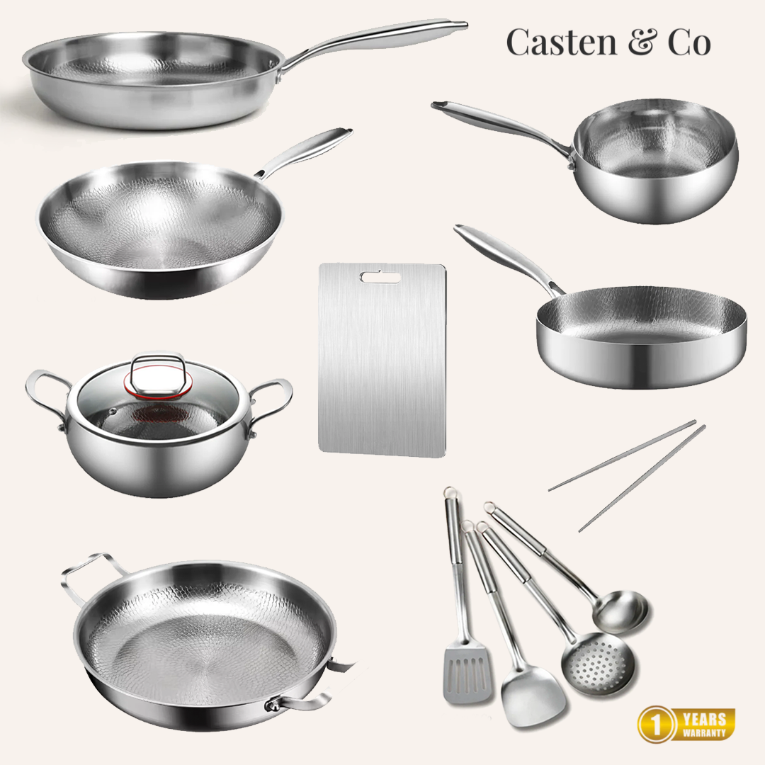All cookware is crafted from premium titanium. None of the pieces are coated with harmful chemicals and each features an elegant, durable finish designed for a lifetime of performance. The exclusive Casten & Co. store is closing soon. These high-quality pieces are now available at a temporary discount of up to 60% as we closed our showroom. Take advantage of this limited-time offer while stock lasts.